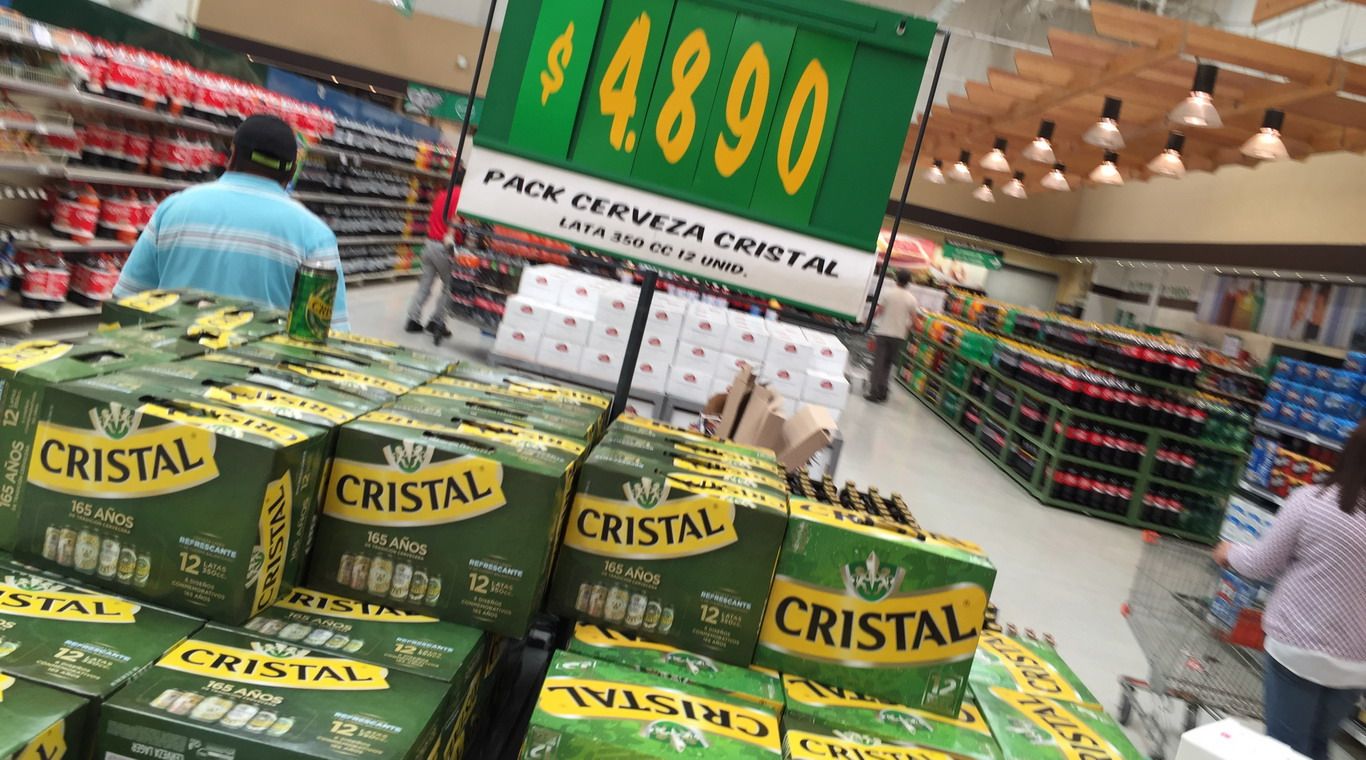 El agua mineral de litro y medio cuesta entre $450 y $500, mientras que un bidón de 5 litros sale $1300. Una coca cola de 3 litros sale $1500. El pack de latitas de 12 unidades de cerveza Cristal cuesta $4890.