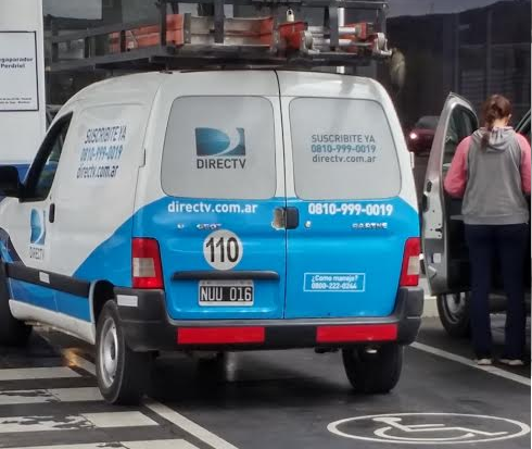 Un móvil de DirecTV fue "escrachado" por un lector de MDZ que usó la APP para contarlo. Según su relato, se estacionó mal en lugar de discapacitados y pisando senda peatonal en la estación de servicio Agrelo, el viernes a las 13.