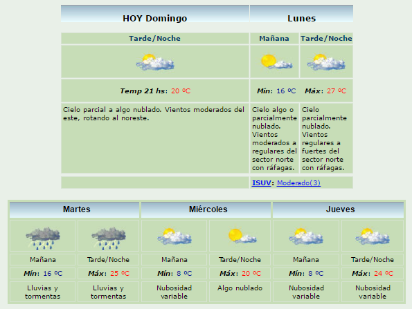 Mientras que para el martes están pronosticadas lluvias y tormentas. Una mínima de 16ºC y una máxima de 25ºC.