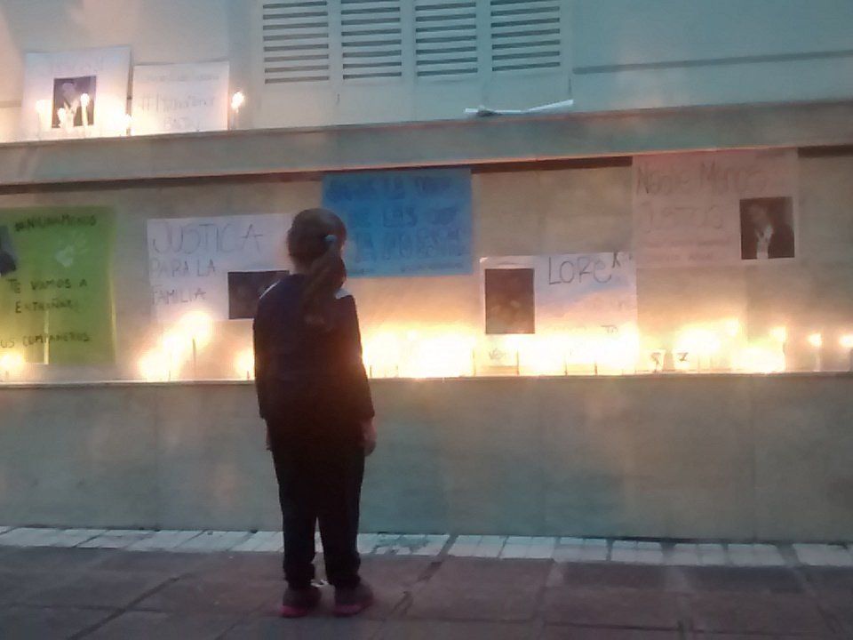 Los manifestantes pegaron carteles y encendieron velas por las víctimas.