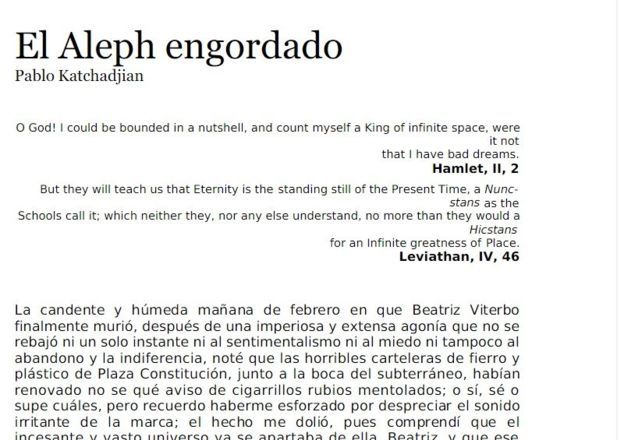 "Lo que hace Katchadjian es mucho más radical que lo que hicieron Borges o los escritores del siglo XX, que es tomar el mismo proceso que usan las artes visuales, como lo hicieron Marcel Duchamp o Andy Warhol, y trasladarlo a la literatura". La obra de Katchadjian agregaba palabras y frases al original de Jorge Luis Borges. De este modo, engordó a 'El Aleph'.