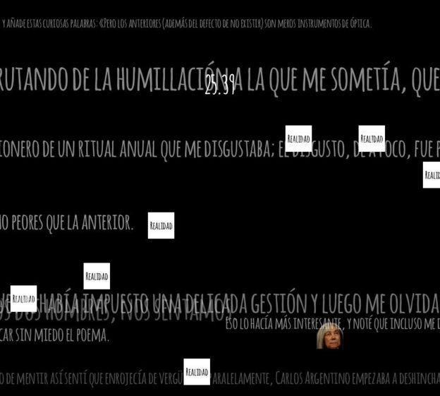 Un bloque llamado "realidad" la persigue bajo el mensaje de "Sos María Kodama, querés el control absoluto de Borges, que nadie pueda tocarlo. Por cuanto tiempo podés evitar la realidad?".