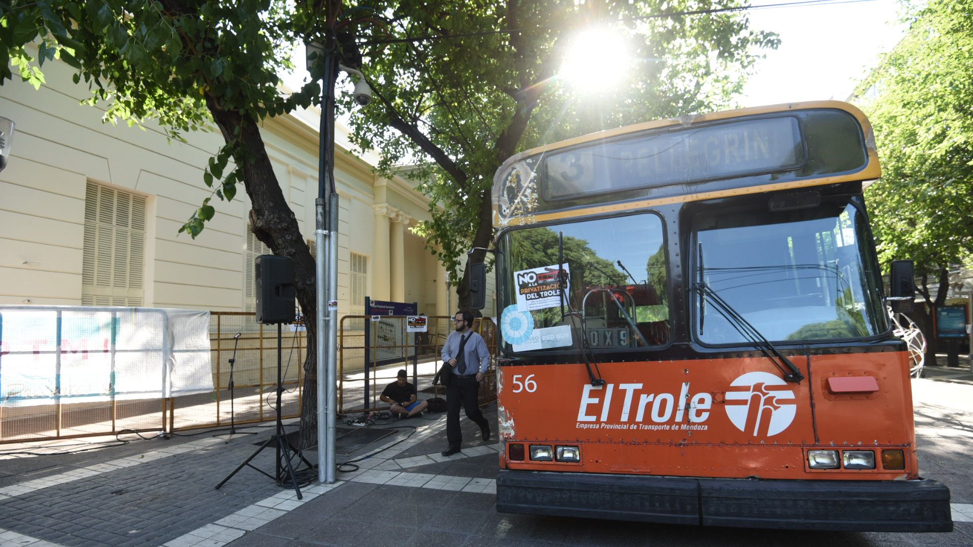 Además de las unidades que cortan el tránsito sobre Patricias y España, los trabajadores de la EPTM introdujeron un trole en la Peatonal, dando lugar a una postal inédita en el centro mendocino.
