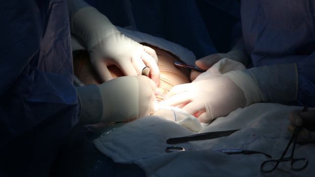 Pero hoy en día muchos bebés nacen por cesárea, una operación en la que el bebé es extraído del abdomen sin ni siquiera entrar en el canal del parto.