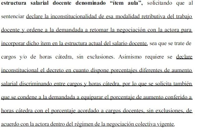 Fragmento de la acción de inconstitucionalidad referido al ítem aula.