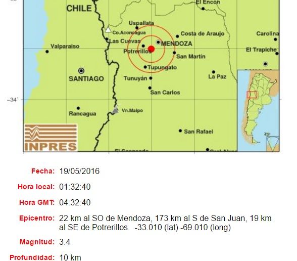 El epicentro, a partir de la información actualizada, se registró a 45 kilómetros al suroeste de Mendoza, a 197 kilómetros al sur de San Juan y a 16 kilómetros al norte de Tupungato.