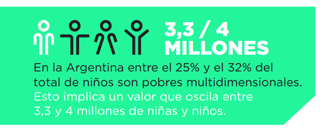 Por su parte, cuando se ajusta estos valores por cantidad de privaciones, el nivel se sitúa entre 6,7% y 8,7%, con un promedio de 5,7 privaciones (entre las 28 posibles) por niño.