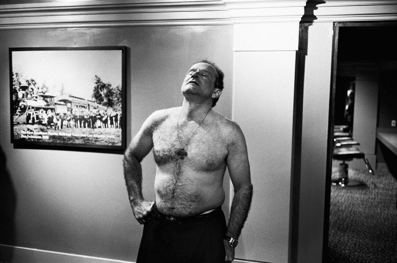 A la hora de pensar en su trabajo con el actor, el fotógrafo habla de haber capturado la calma antes de la tormenta. Y relata que en los momentos previos a una actuación, Williams podría derivar hacia lo que parecía ser de otro mundo. Se ponía muy tranquilo, casi somnoliento. Casi que dormitaba en esa previa, hasta que oía su presentación por parte del locutor de turno y abría los ojos. "Y salía a escena como un disparo".