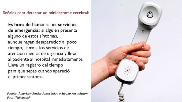 "Es una emergencia médica. Cuando los síntomas empiezan, debes llamar (al servicio de emergencia) y decir que estás sufriendo un derrame".