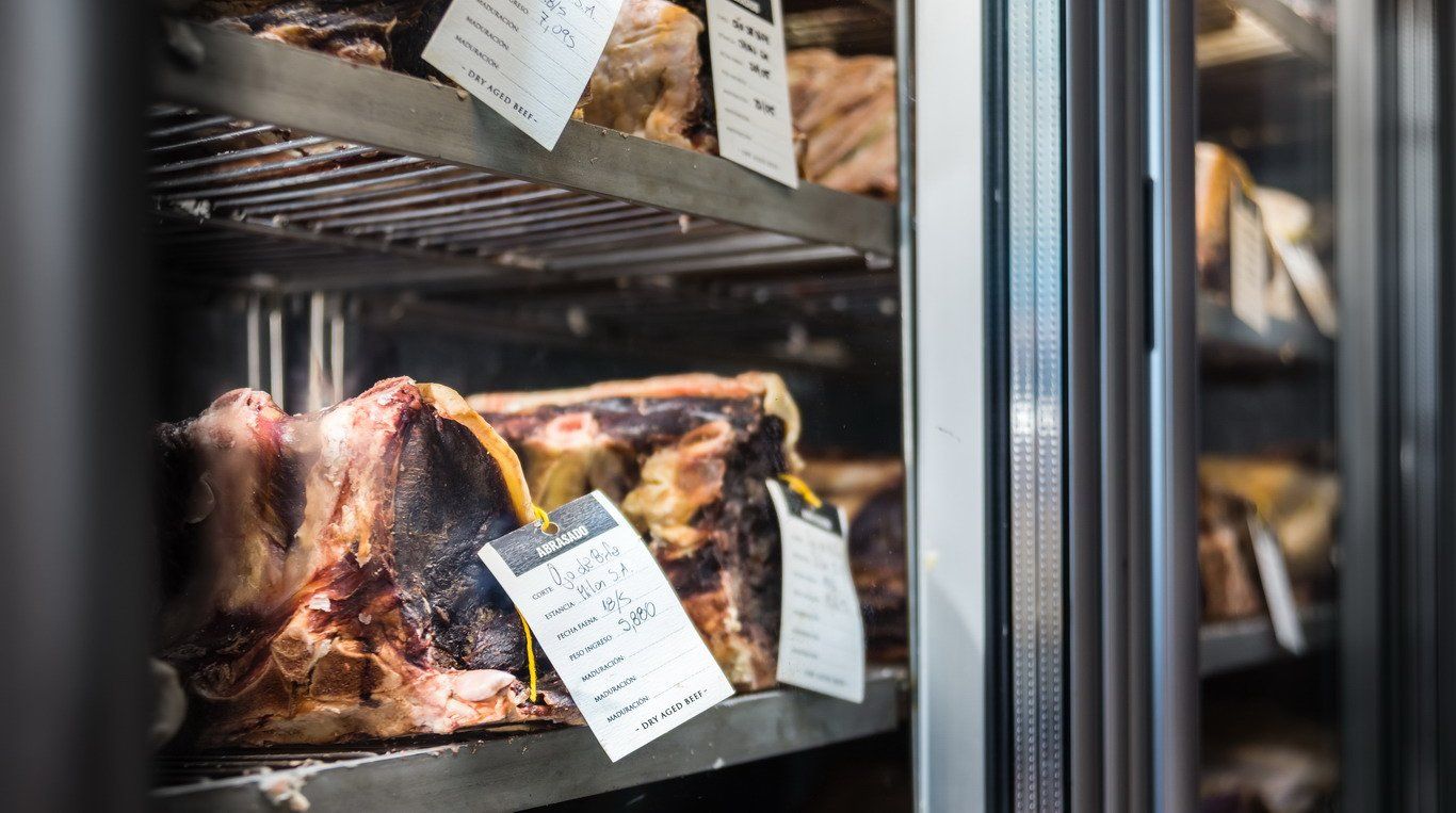 "Las carnes maduradas en seco son el signo distintivo de nuestro restaurante. Este método permite que la carne añeje mejorando su sabor, color, textura y jugosidad. Consiste en mantener a los mejores cortes de carne vacuna en un específico sistema de refrigeración, donde se genera un microclima: la temperatura es de 1-3 °C, la humedad oscila entre 50% y 70% y el flujo de aire está controlado", contó Melisa Millán -Hospitality Manager de la Bodega-.