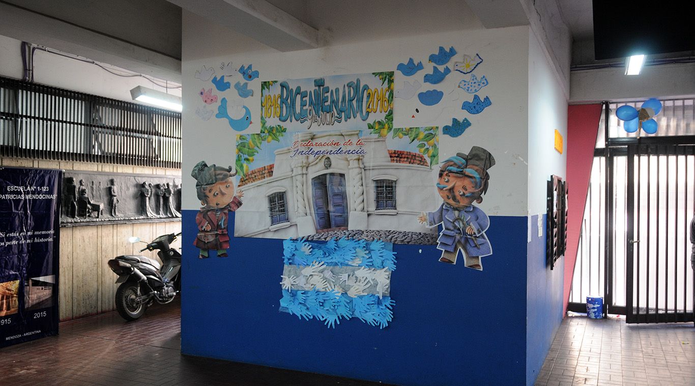 Las escuelas de Mendoza buscaron dejar en la historia el momento que les toca vivir a alumnos, docentes y padres: nada menos que el Bicentenario de la Independencia. Por eso, engalanaron sus frentes e interiores y recordaron con suma dedicación la fecha patria.