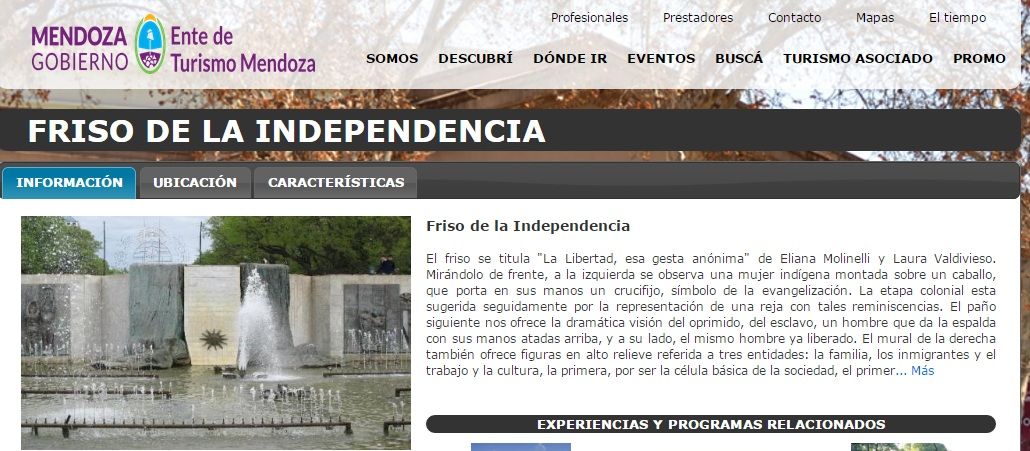 Más allá del justificado reclamo de las hijas de la talentosa escultora Eliana Molinelli, persisten algunos "errores" en páginas institucionales tan importantes como la del Ente de Turismo de Mendoza, en la que se puede leer claramente "El friso se titula 'La libertad, esa gesta anónima', de Eliana Molinelli y Laura Valdivieso".
