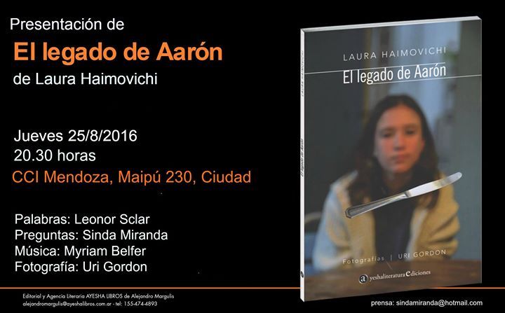 El legado de Aarón es el primer texto narrativo de Laura Haimovichi. Incluye fotografías de Uri Gordon, fue publicado por Ayesha Literatura Ediciones y distribuye Galerna.