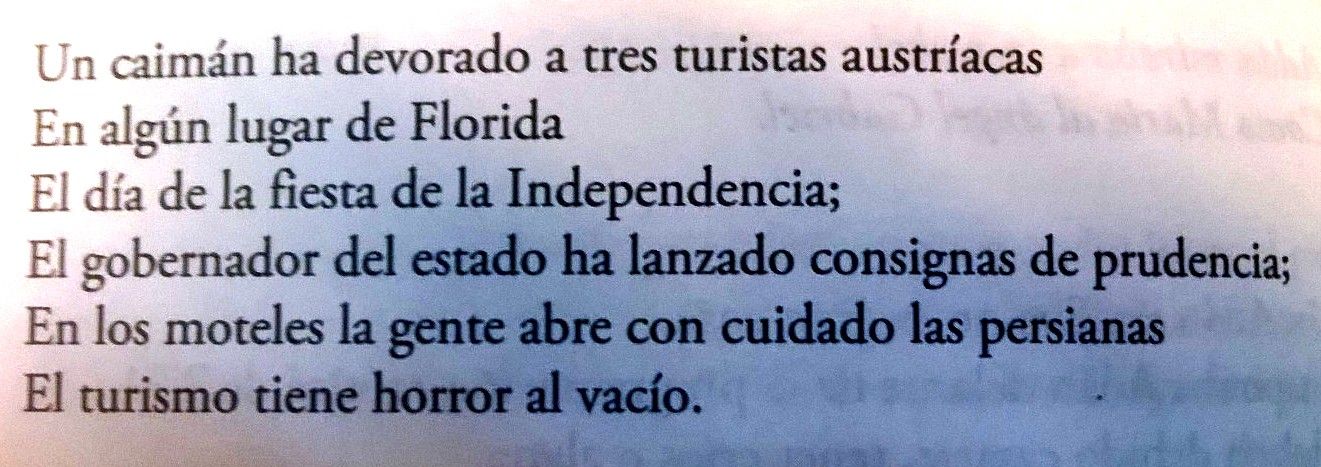 Nadie define a la poesía. Sería como capturar un unicornio (hablando de malos poetas). La poesía es eso que está en el aire y que algunos muy lúcidos saben captar, de modo natural, sin forzarse. Borges, Joseph Brodsky, César Vallejo. Otro de este pelotón, el chileno más que centenario Nicanor Parra, afirma: "El poeta está ahí para que el árbol no crezca torcido". Y también dice: "El poeta no cumple su palabra si no cambia los nombres de las cosas".