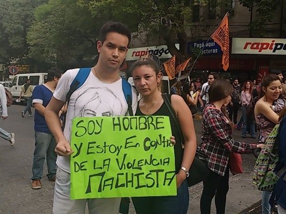 Los hombres también se hicieron presentes en la marcha que se llevó a cabo el miércoles, 28 de septiembre . "Soy hombre y estoy en contra de la violencia machista", decía uno de los carteles.