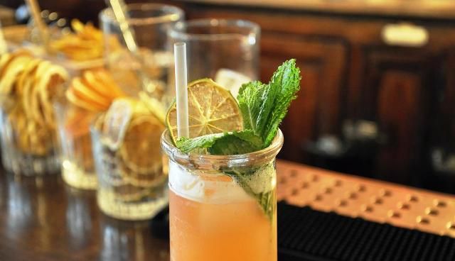 El cóctel del día en el Café Moderne de París: el Sherry Breeze, que se mezcla suavemente con vodka, fresa confitada, crema de jerez y otros jugos de frutas.