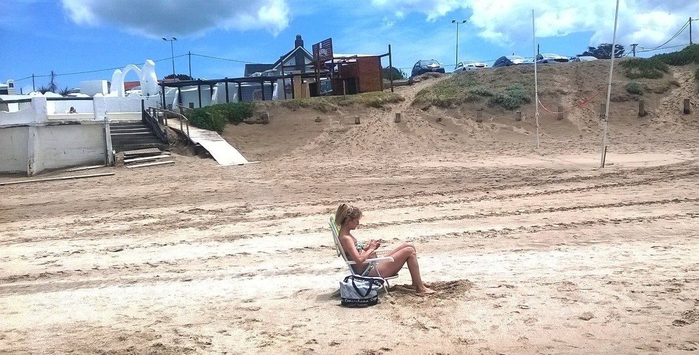 Además de verla en absoluta soledad lo impresionante es que cada día que la encuentro no hay casi nadie en las proximidades de la playa en la que se instala. Hace 15 días que la escena es similar: luego de trepar una duna muy empinada, desde la cumbre diviso todo (pero todo-todo) el mar. Y cuando piso la arena la veo a ella, a Soledad Malena. O a la Sole, si prefieren.