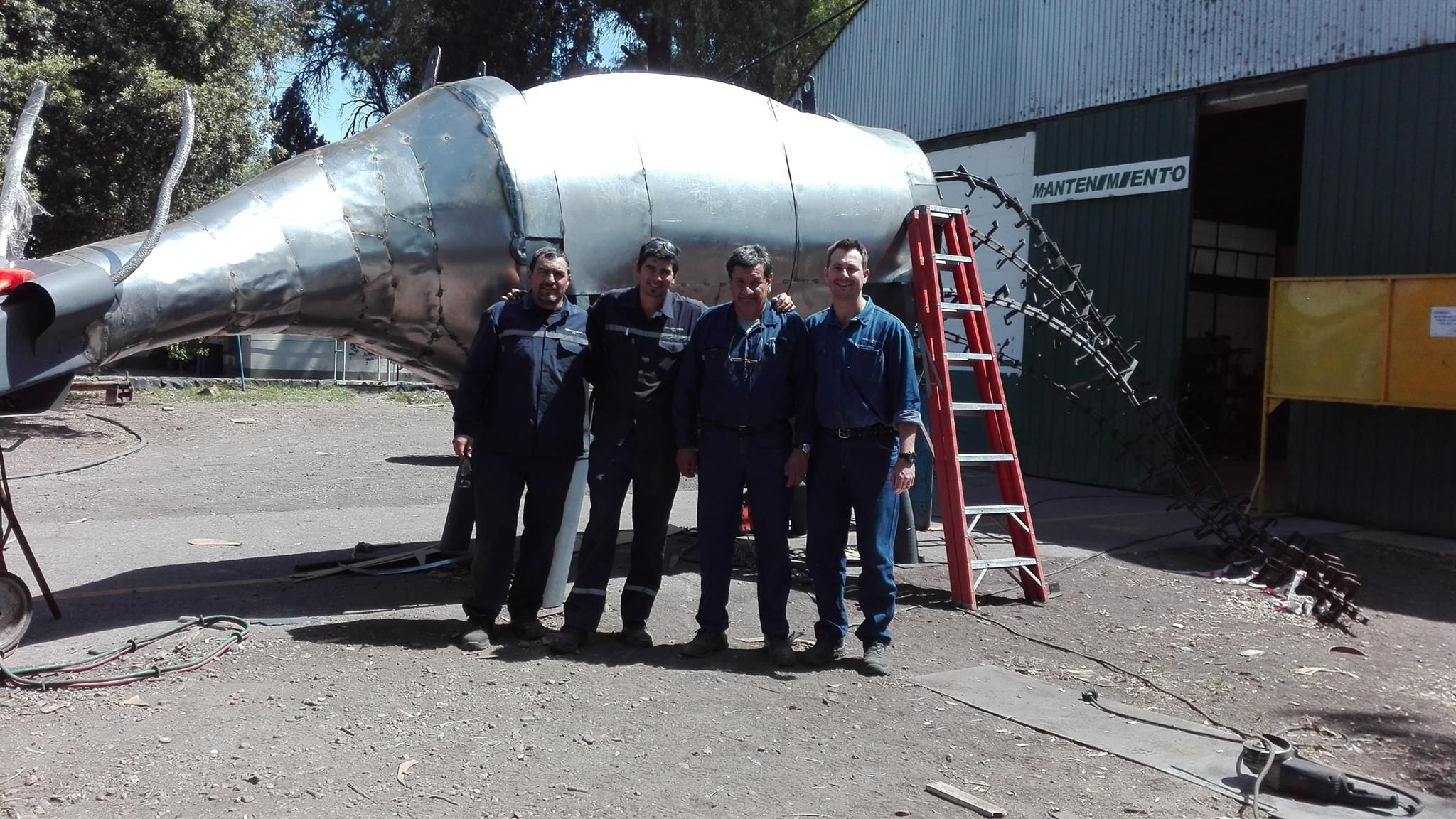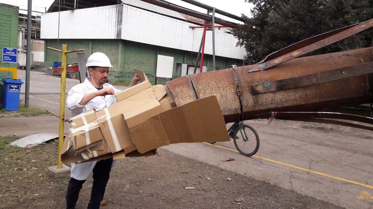 La obra, que fue realizada con materiales reciclados, fue ensamblada por un grupo de cuatro operarios (Omar Moyano, Germán Savoini, Maxi Díaz y Ángel Navarro) que fueron retirados de sus labores cotidianas para que se pudieran dedicar de lleno a esta tarea.