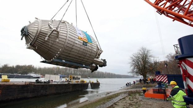 En el sótano del Instituto de Tecnología de Karlsruhe, en el suroeste de Alemania, hay una extraña máquina de acero inoxidable cuyo diseño trae a la memoria a los antiguos zepelines de la Primera Guerra Mundial.