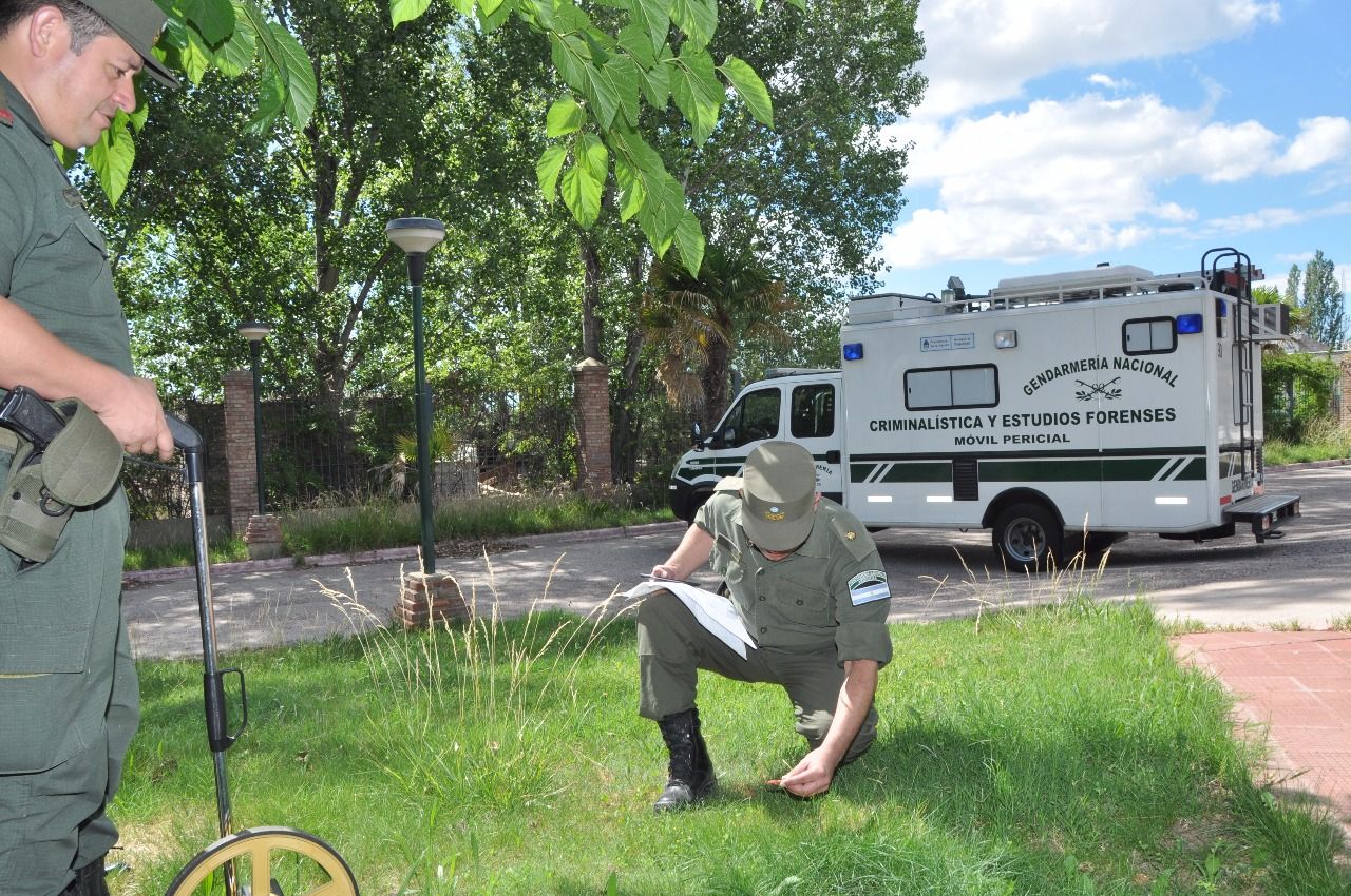 Los peritos de Gendarmería recorrieron el lugar tomando fotografías y con detectores de metales, con el objetivo de encontrar algún objeto que los acusados puedan haber enterrado en los jardines del predio ubicado en calle Boedo.