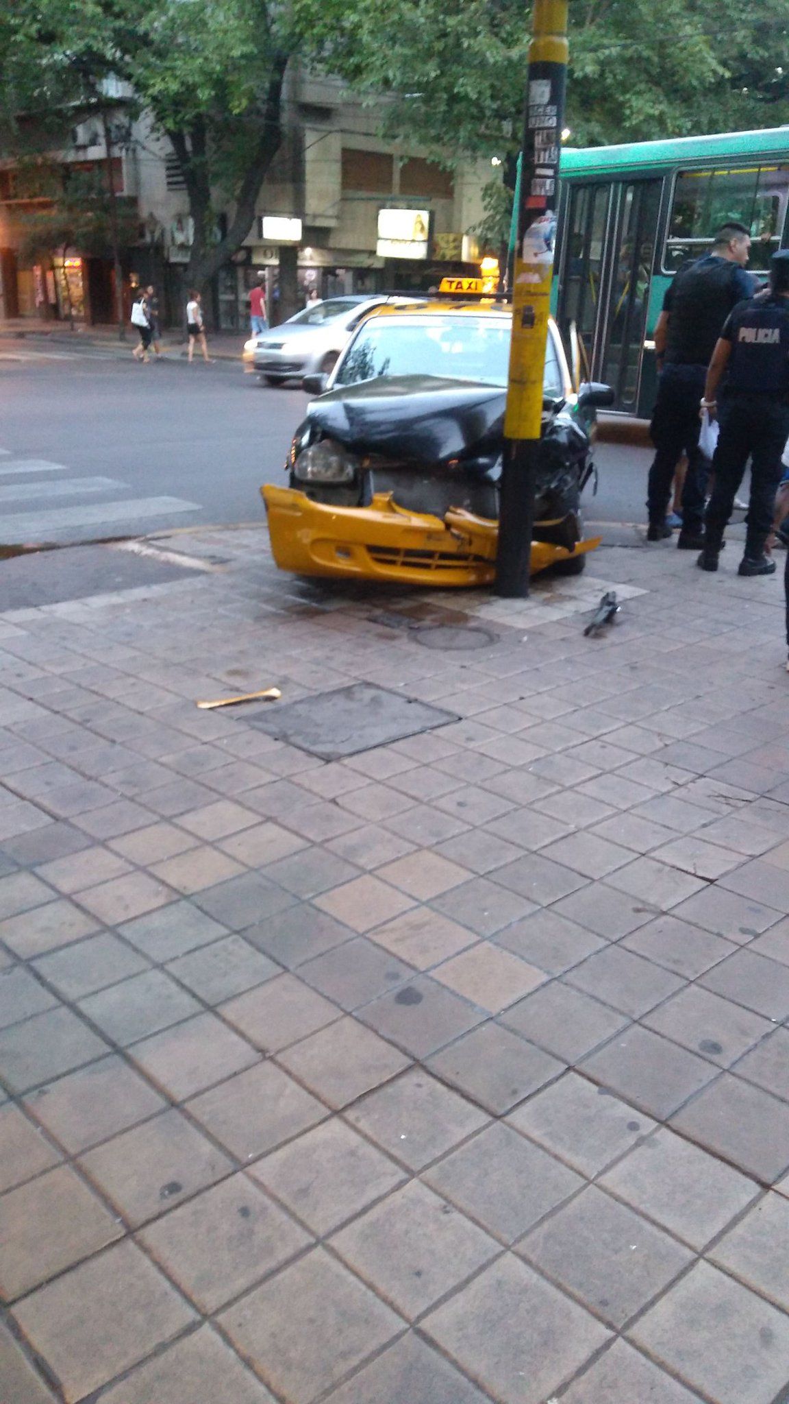 Un lector de MDZ envió una foto que muestra cómo quedó un taxi que chocó contra un semáforo en pleno centro.