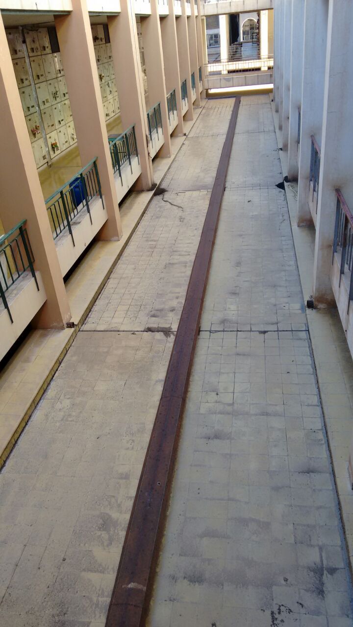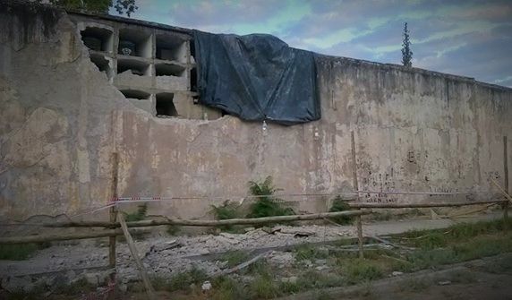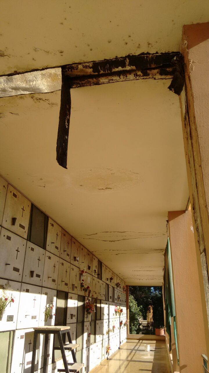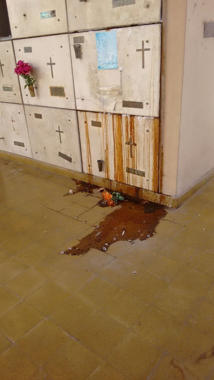 Una fotogalería que describe el estado actual del lugar: algunos cajones a la vista, agua que sale de los nichos y excrementos de murciélagos y palomas.