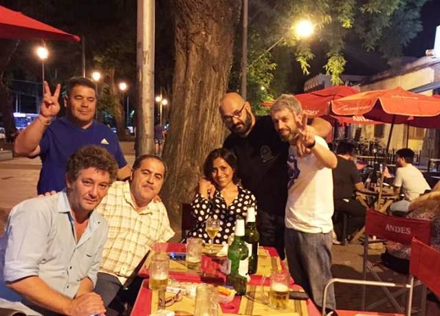 Cuando llegué, con las reservas que supone una clase de encuentro así, estaba otro viejo compañero de rutas, el no tan pequeño de porte pero gran republicano, el fenómeno Martín Ramírez. Siempre que lo veo tiene el mismo tono, aplomo y una sutil decencia en sostener sus ideas políticas. Fue quien inventó este grupo B, de Amnesty. Y también es el inventor de la Fiesta de la Cerveza de Godoy Cruz. La que bebe en su intimidad casi siempre es la que produce en sus confines, del modo más artesanal posible, pero léase artesanal, del verbo que se las rebusca para tomar lo que le gusta y a su modo. Es de River. Nadie es perfecto, ya sabemos. Capo, igual.