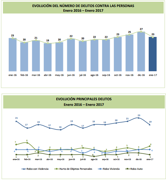 En esta oportunidad, se concretaron 1.198 encuestas entre los días 3 y 9 de enero, en los principales 40 centros urbanos del país, que luego se categorizan en Ciudad de Buenos Aires, Interior y Gran Buenos Aires. La última medición estima que el 31,2 por ciento de los hogares fueron víctimas de un delito en los 12 meses pasados, representando un 0,4 por ciento de incremento del valor observado en enero de 2016, aunque 3,5 por ciento menos que en diciembre de 2016. Del total de lo relevado, en el rubro "Delitos contra la Propiedad sin Violencia", se indica que de cada 100 hogares, 12 sufrieron un robo, manteniendo la misma proporción que la anterior encuesta y un punto menos que la realizada en igual mes de 2016. Mientras que en "Delitos contra las Personas", las víctimas asciende a 23 cada 100 y no varía demasiado, en relación a los últimos informes.