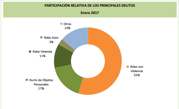 El informe que mide, de manera mensual, lo que se conoce como Indice de Victimización (IVI) señala que, en relación a la estadística que arrojó enero de 2016, en este año ese porcentaje apenas subió en el orden del 0,4 por ciento. No obstante, destaca que "de cada cien hogares, 19 sufrieron un robo con violencia y por lo tanto, esta modalidad delictiva tiene una participación relativa del 55 por ciento sobre el total de los delitos sufridos", según publicó Diario Popular.
