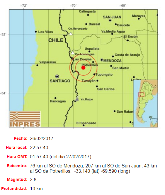 Desde el 2 de febrero que se vienen registrando múltiples sismos con epicentro situado entre 40 y 50 kilómetros al sudoeste de Potrerillos y con profundidad de 8 a 10 kilómetros. Si bien en un principio esto se podría atribuir a las réplicas del movimiento sísmicomás fuerte registrado este año en la provincia, ocurrido ese mismo día y en esa zona, de magnitud 5,3, la realidad es que a pocos días de concluir febrero aún sigue moviéndose el piso con bastante frecuencia en esa zona.