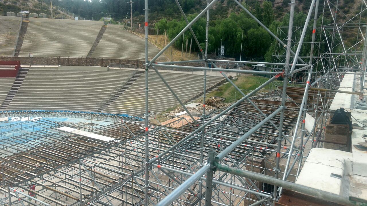 El escenario para la Fiesta de la Vendimia 2017 empieza a mostrar su estructura y avanza a buen ritmo. Hace una semana comenzó el montaje escenográfico en el teatro griego Frank Romero Day, mientras se finalizan las obras de innovación y mantenimiento en el emblemático sitio mendocino.