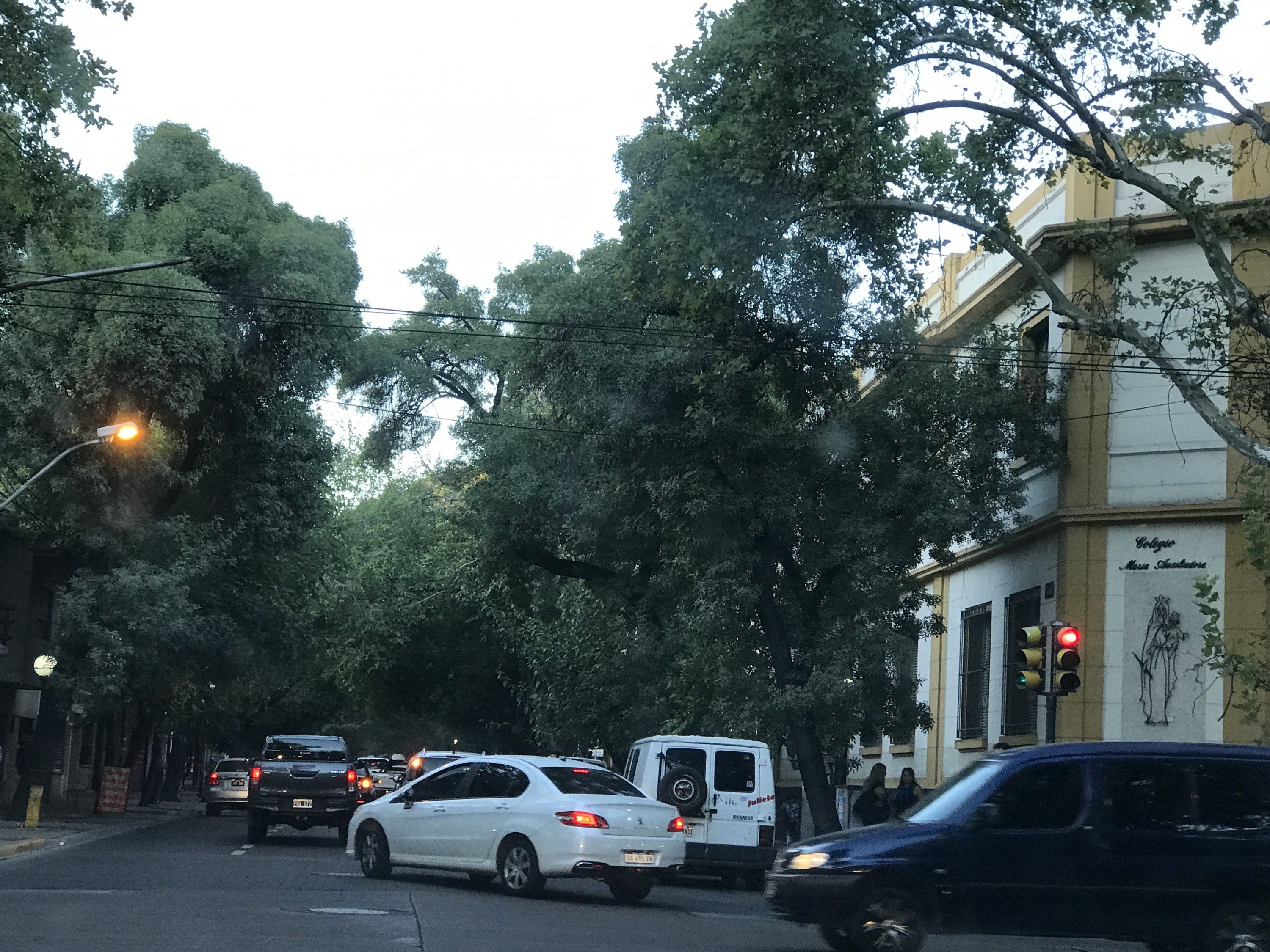 Una costumbre popular en Las Heras y 25 de Mayo de Ciudad en el horario de ingreso y egreso de los alumnos es que la triple fila está permitida. Ya no estacionarse en doble fila, sino en tres.