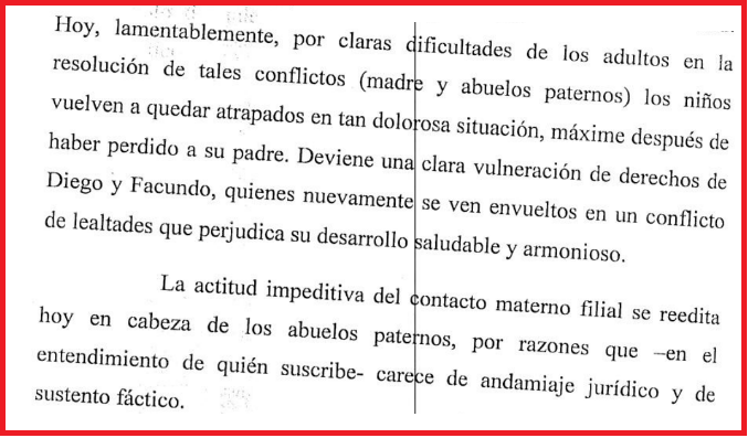 Todo esto generó un "conflicto de lealtades" en el hijo mayor, "absolutamente nocivos para su salud mental".