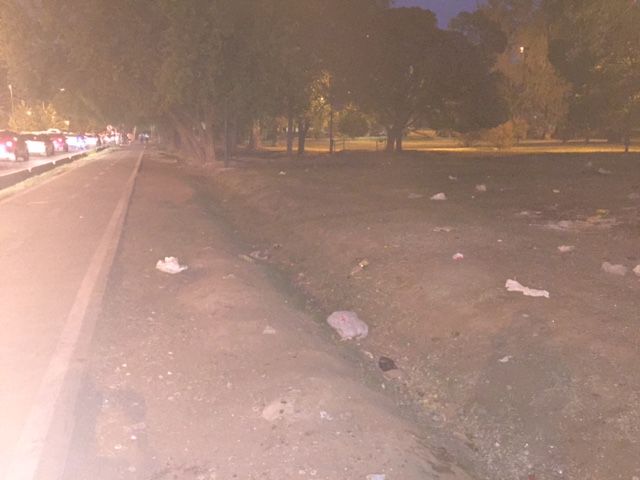 Paseantes del Parque enviaron imágenes más que evidentes de la basura que dejan en un predio lindero a la cancha de Independiente Rivadavia aquellos que participan de "tiradas" a alumnos egresados de la Universidad de Mendoza.
