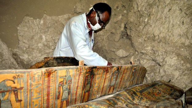El fantástico descubrimiento en Egipto de una tumba "intacta" con 8 momias, 10 cofres y cientos de figuras funerarias
