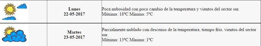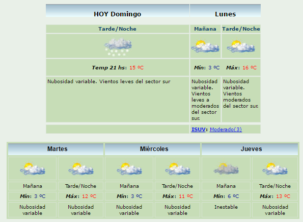 Pronóstico para el lunes y el extendido para los días siguientes del Servicio Metereológico Nacional (arriba) y Contingencias Climáticas (abajo):