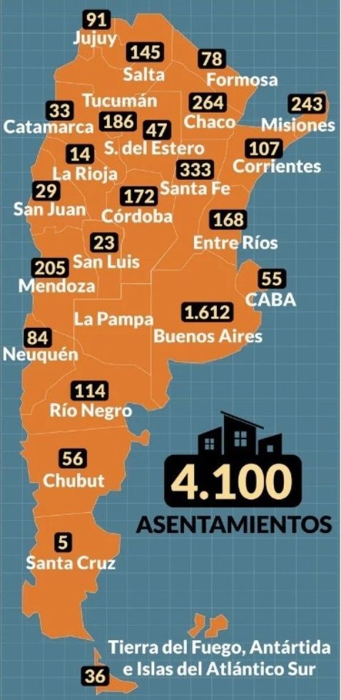 La situación de nuestra provincia no es para nada alentadora. En Mendoza los asentamientos contabilizados son 205 y se ubica quinta en el ránking nacional, sólo por detrás de las provincias de Buenos Aires, Santa Fe, Chaco y Misiones.