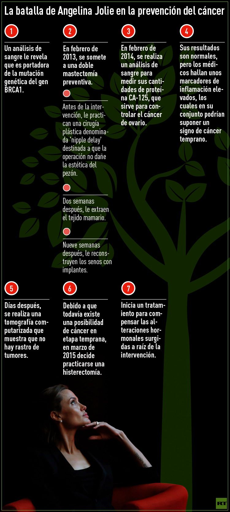 Y, para otros, supone un ejemplo de coraje y valentía al tomar la decisión que marcaría un antes y un después en su vida: pasar por quirófano para que le extirparan los dos senos, los ovarios y las trompas de Falopio con el objetivo de minimizar las probabilidades de sufrir cáncer. Esta enfermedad provocó la muerte de su madre, tía y abuela.