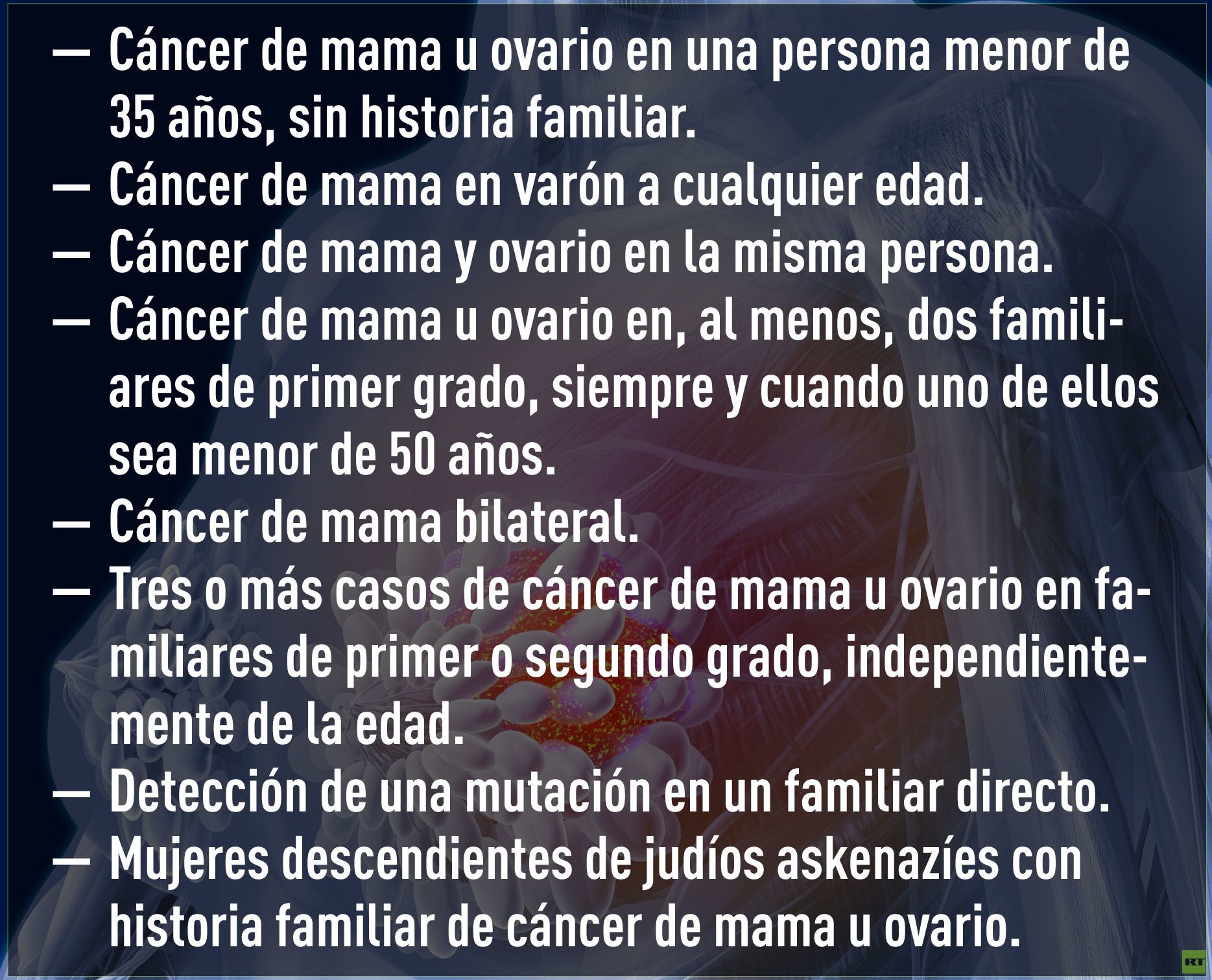 Además, en estos casos el riesgo de cáncer de ovario también es significativamente alto: entre el 16% y el 44% (la población femenina general presenta apenas un 2%).