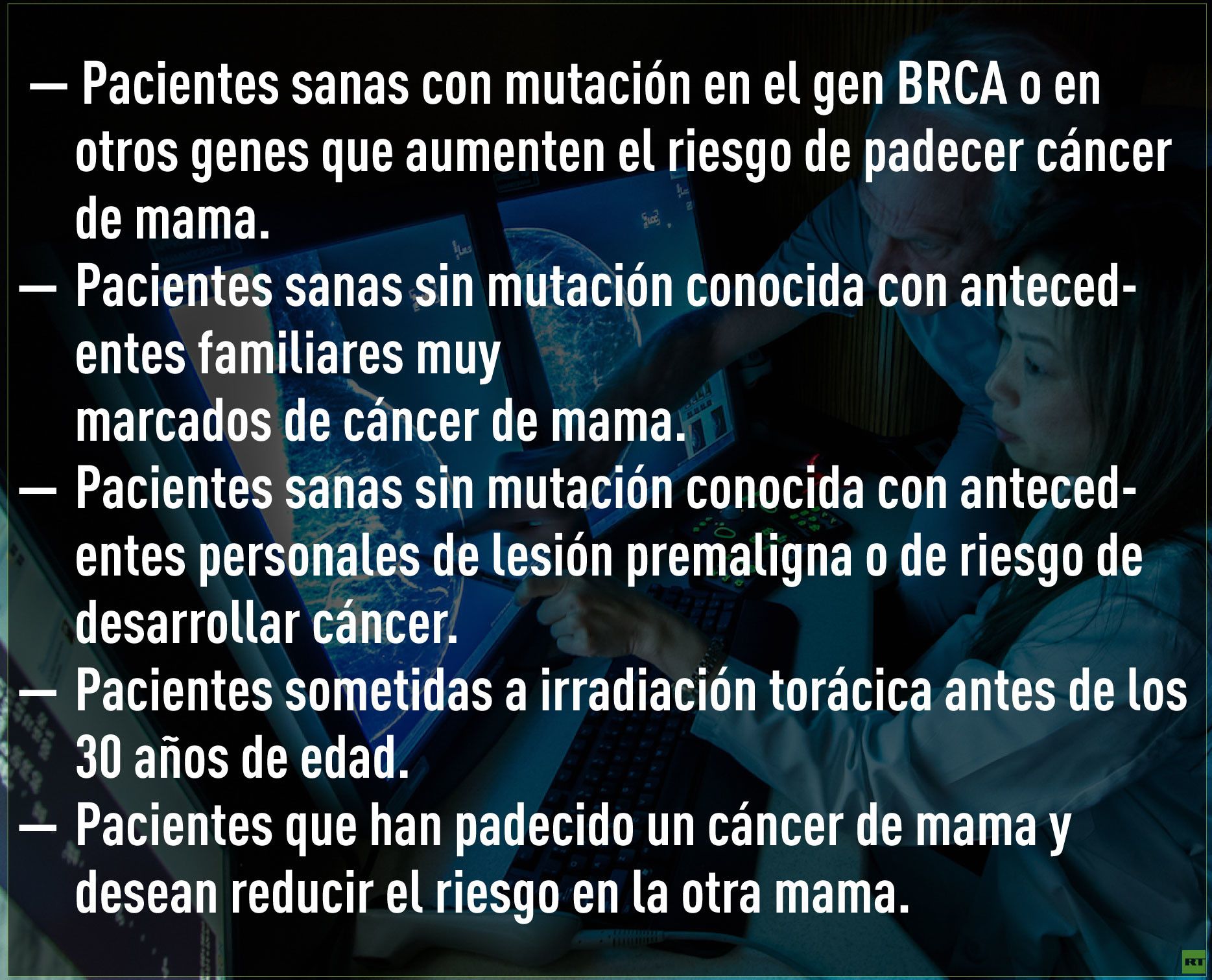 Además, la doctora Victoria de Diego Pérez de Zabalza añade que también estaría indicado "en mujeres con cáncer de mama con algún fenotipo inmunohistoquímico agresivo o en mujeres muy jóvenes con tumores de rápido crecimiento".