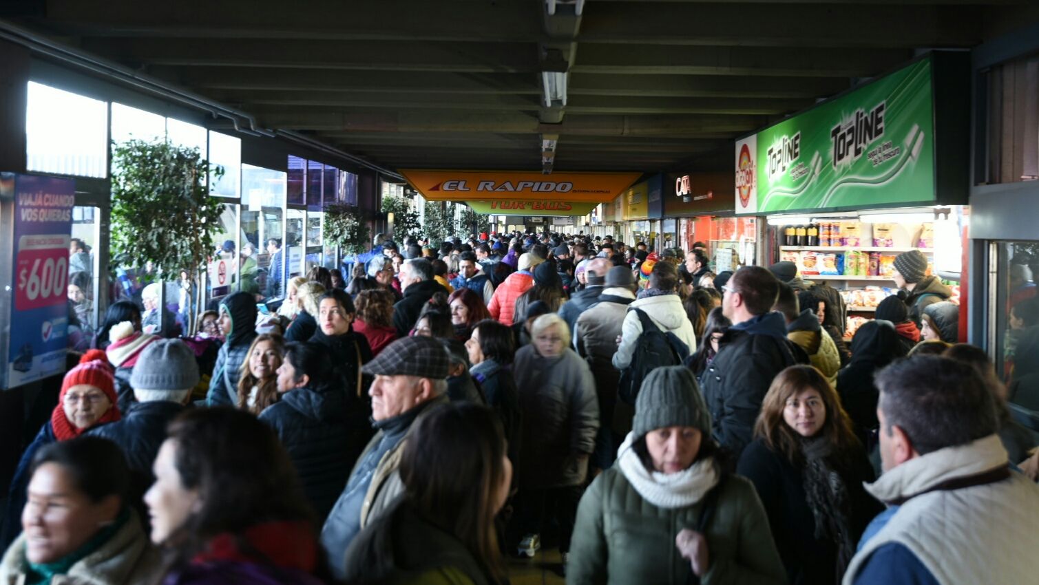Caos, música y reclamos en la Terminal de Mendoza