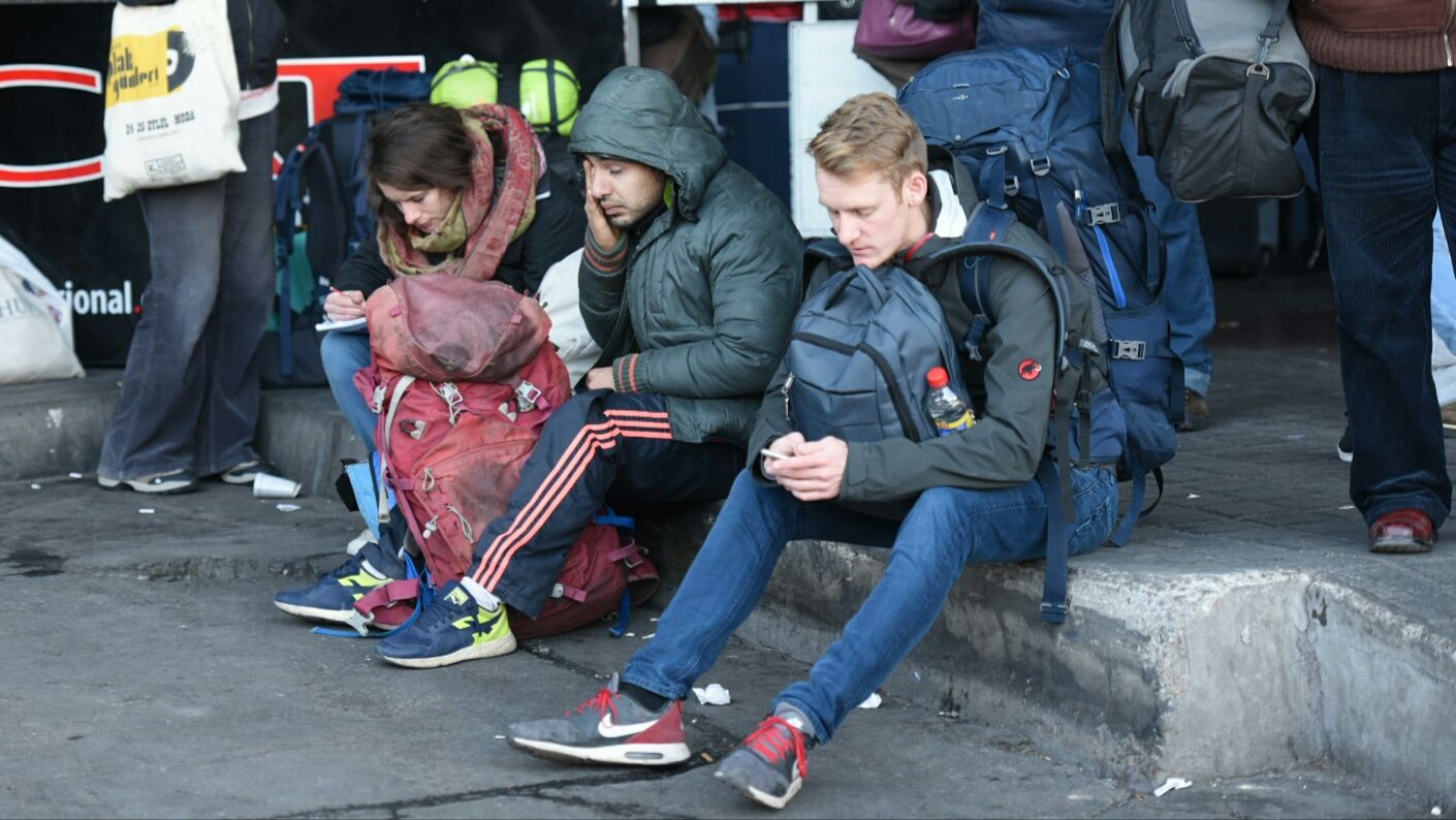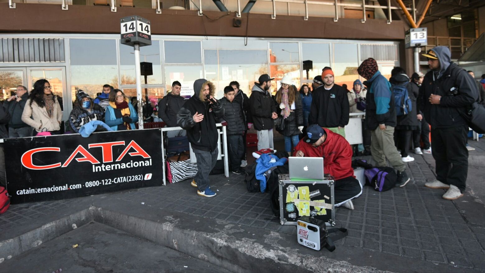 Otros que divisaron en el caos una oportunidad de entretener a los impacientes fue un grupo de raperos chilenos que se pusieron a "mostrar su arte" para amenizar la espera. Con el apoyo de una consola y una notebook se iban turnando para recitar sus rimas mientras el resto de los viajantes los observaban azorados. Cuando uno tomaba el centro de la escena para recitar sus versos, el resto acompañaba con pasos de breakdance, dotando de originalidad la tensa espera.