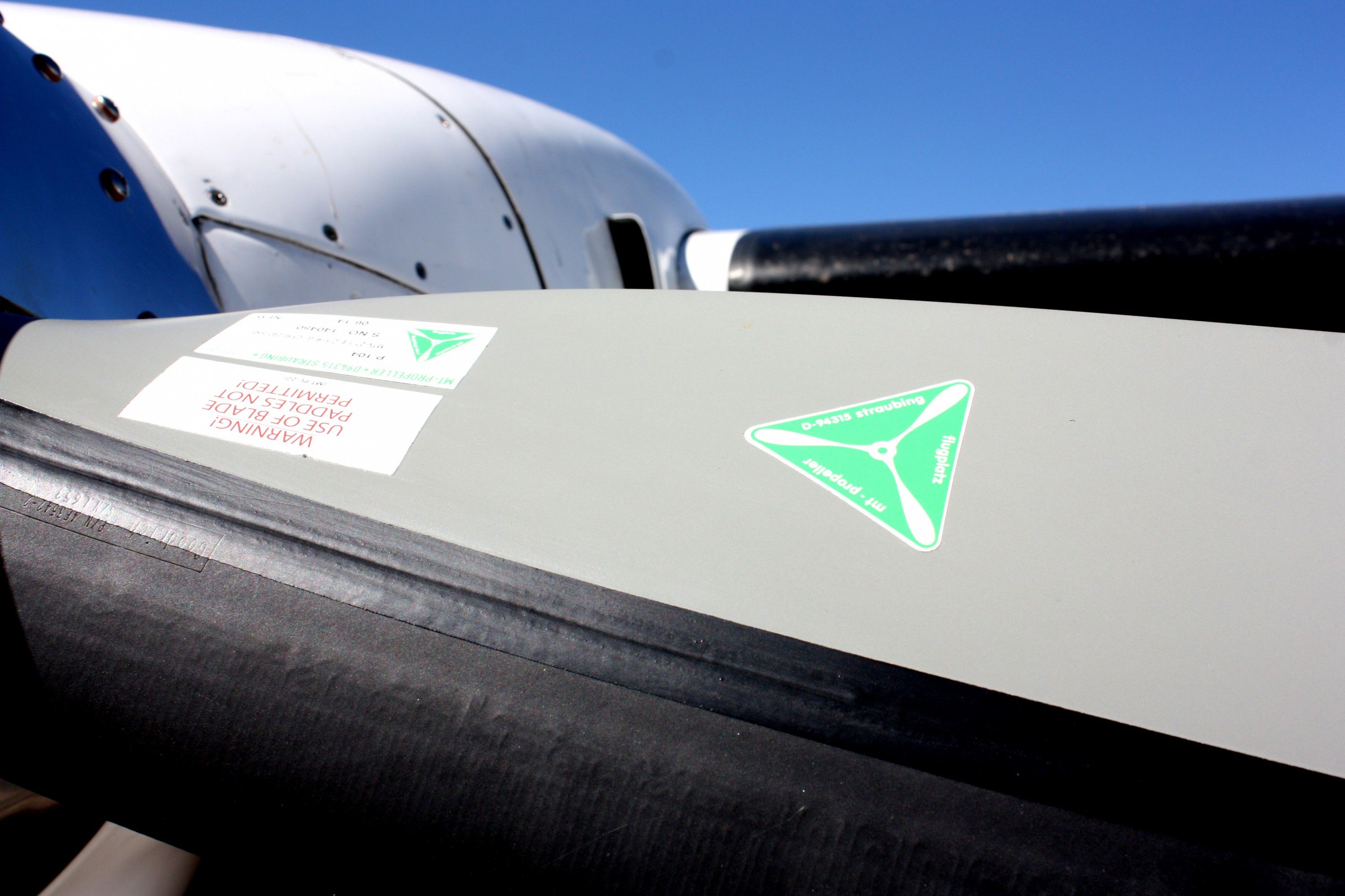 Las hélices alemanas MTV-27 que se colocaron al avión perdido están fabricadas en madera de haya laminada altamente comprimida que tiene una resistencia a la tracción similar al acero. El núcleo es reforzado por capas de fibra de carbono y vidrio; y sellado con capas de pintura acrílica de poliuretano, entre otras características. El logo de MT Propeller Straubing Flugplatz en el LV-MCV extraviado.