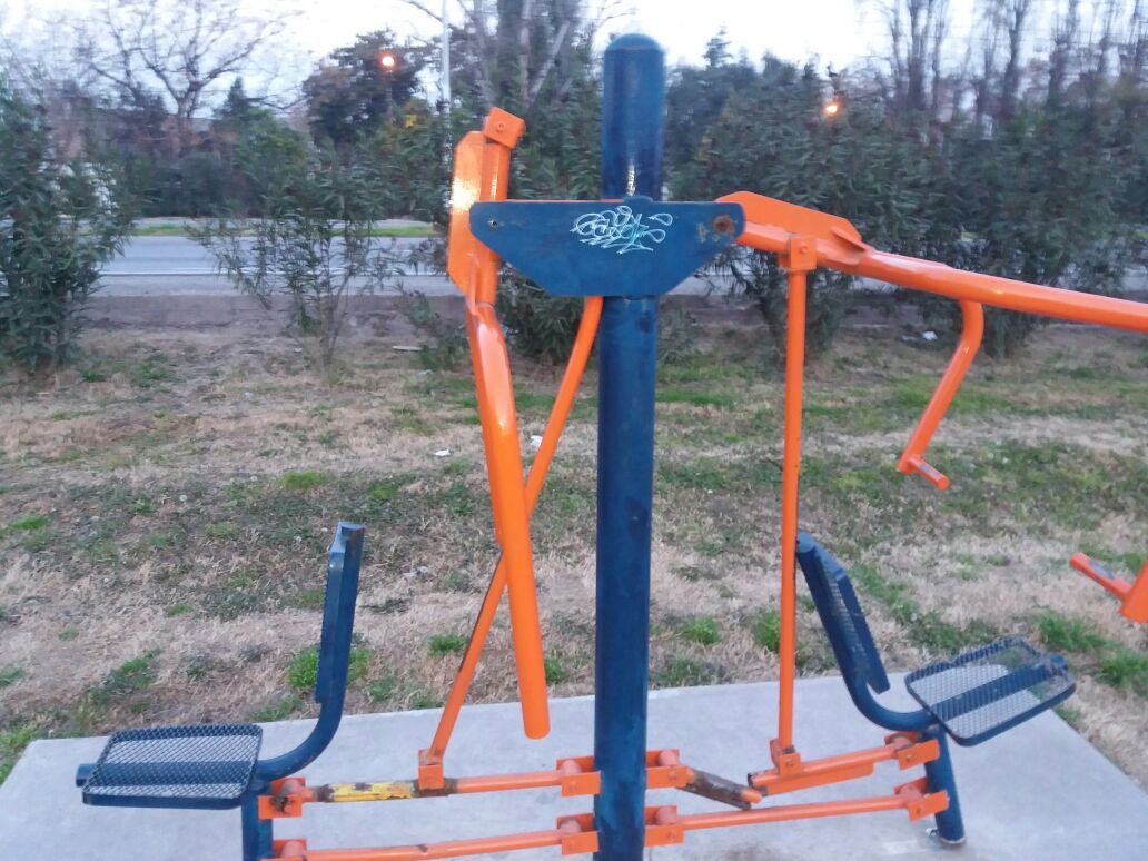 Dos años después, los aparatos del gimnasio al aire libre del Acceso Norte, a la altura del barrio Cirsubdoz y frente al Ujemvi, en el departamento de Las Heras, están casi todos rotos. Se trata de una obra ejecutada por la administración de Rubén Miranda y que forma parte de circuito de cuatro kilómetros de la bicisenda que une la Rotonda del Avión con la calle Indepedendencia y que en su momento se destinó para esta obra unos 8 millones de pesos.