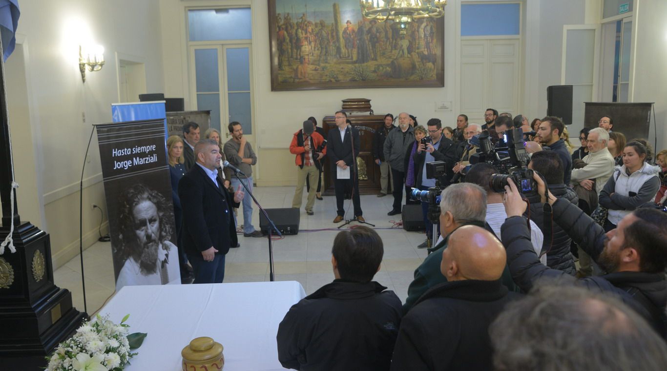 Una emotiva ceremonia se llevó a cabo este viernes en la Legislatura al recibirse en uno de sus salones las cenizas de Jorge Marziali, un referente de la música y la poesía nacional, que trascendió las fronteras de Mendoza. A través de su poesía, su música y su personalidad, Marziali cosechó un sinnúmero de amigos. Son ellos, junto a su familia, los que celebran la vida del cantautor mendocino.