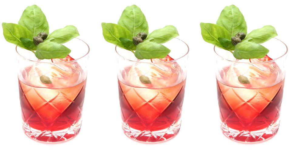 Llenar con hielo entero un vaso Old Fashion. Agregar Cinzano, Campari y gin. Integrar. Para el cierre del trago utilizar salmuera de alcaparras y albahaca.