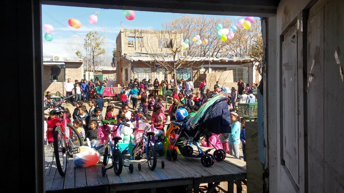 Nada tenía y nada le queda en las manos, luego de cada año que pasa y organiza el "Día del Niño" y cientos y cientos de regalos son sorteados y cientos y cientos de tazas de chocolate son repartidas, con galletas o medialunas; nada le queda: al otro día, vuelve a bajar a la ciudad en el micro a limpiar baños de gente que tuvo mejores herramientas y más suerte, como vos y yo, para salir adelante.