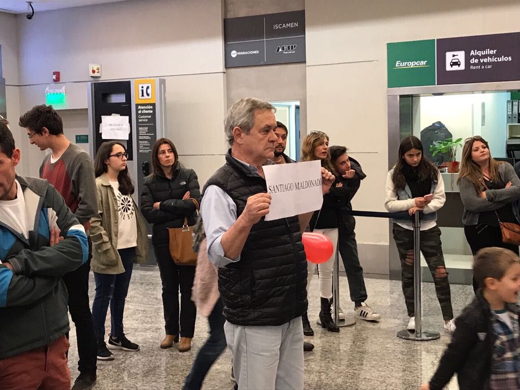 Una persona que esperaba en la zona de arribos internacionales del aeropuerto El Plumerillo reclamó de una forma curiosa por la aparición de Maldonado.