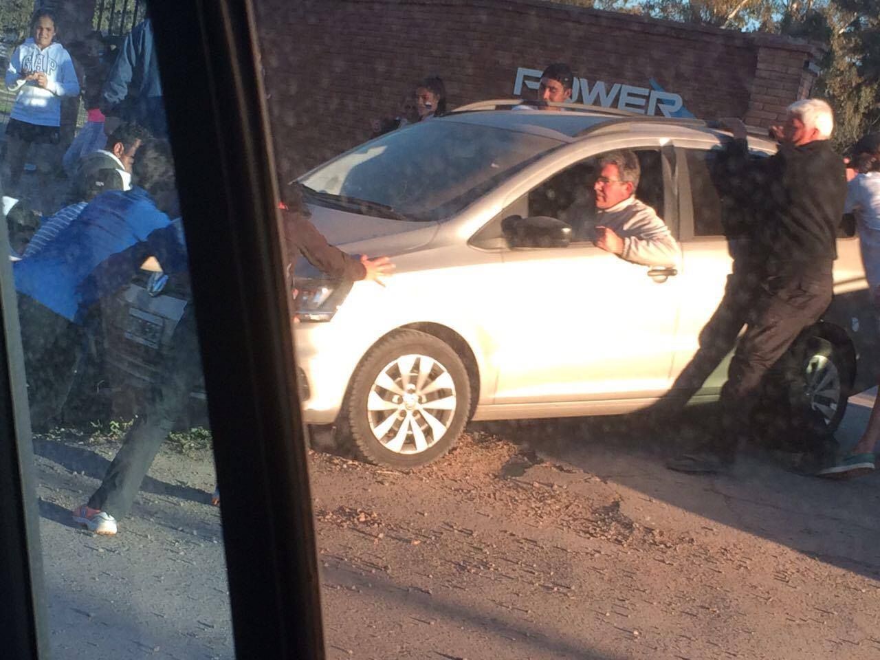 Esta tarde, el subsecretario de Deportes, Federico Chiapetta tuvo que superar un percance en Marista, luego de que a la salida del predio su vehículo cayera a una acequia, por lo que -como lo muestran las fotos- individuos acudieron a ayudarlo a sacar el automóvil de allí.