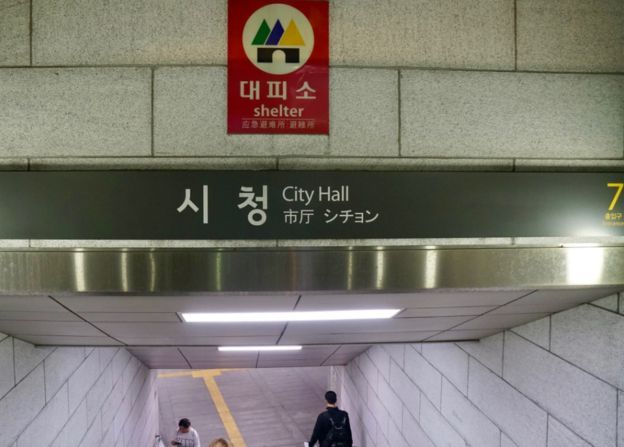 A diferencia de Seúl, donde las estaciones del metro y los sótanos de los bloques de viviendas se usan como refugios de emergencia, este lugar tiene un búnker construido con ese propósito, dos plantas bajo tierra y debajo de una puerta de 20 centímetros de grosor.